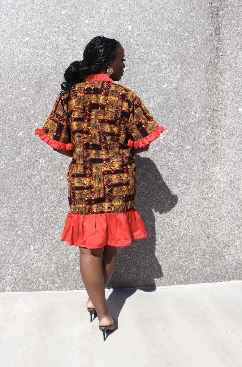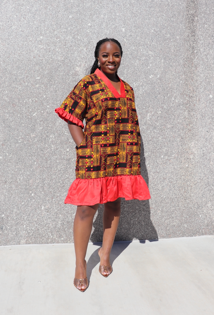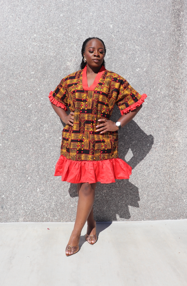 Red Zola Dress — African Print Boubou with Pockets