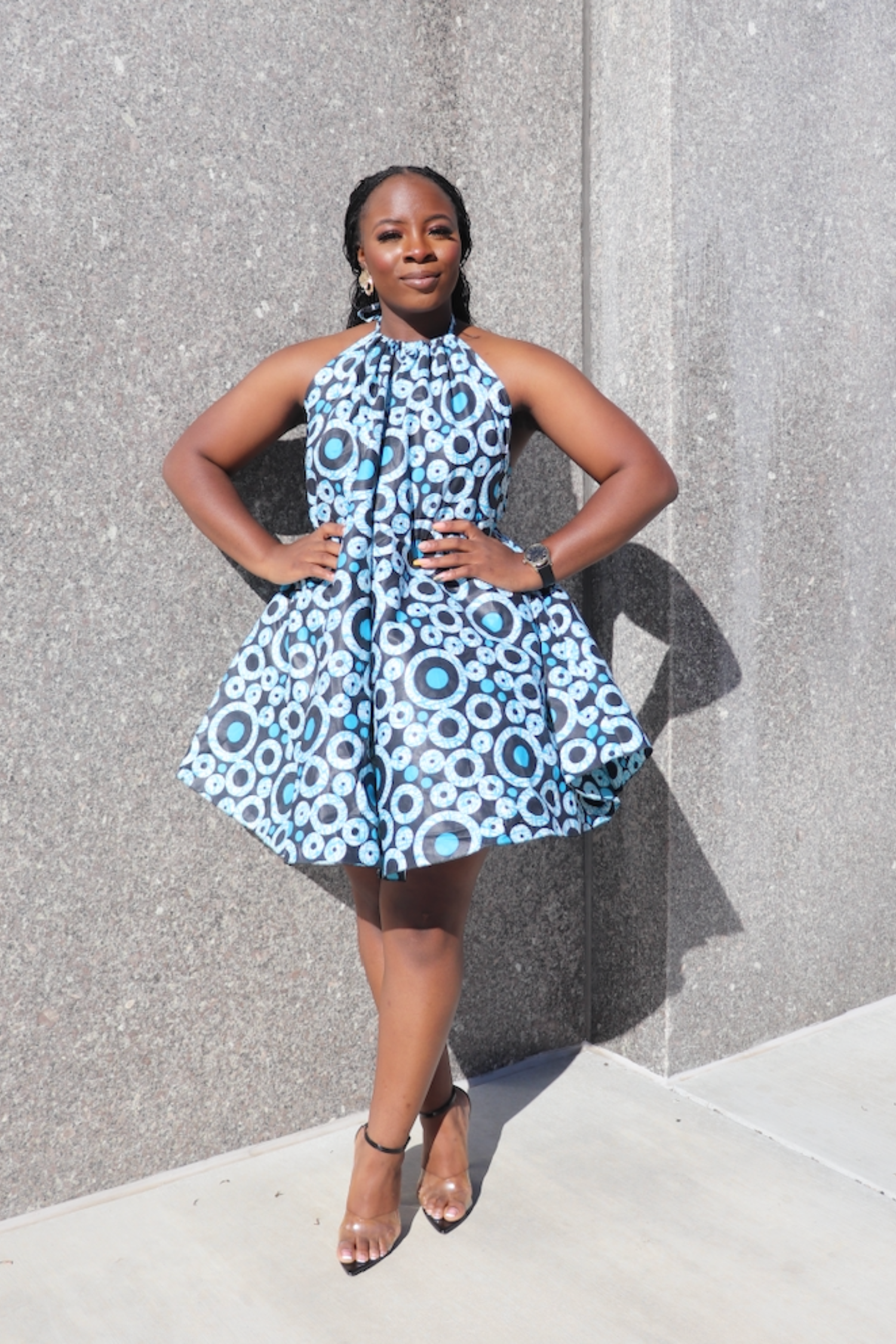 The Ama Dress is a celebration of bold femininity and effortless movement. Featuring an open-back halter neckline and a playful flared mini silhouette, this piece radiates sunshine and confidence. Made from lightweight Ankara cotton, it’s the perfect statement for brunch, vacations, or any day you want to glow.