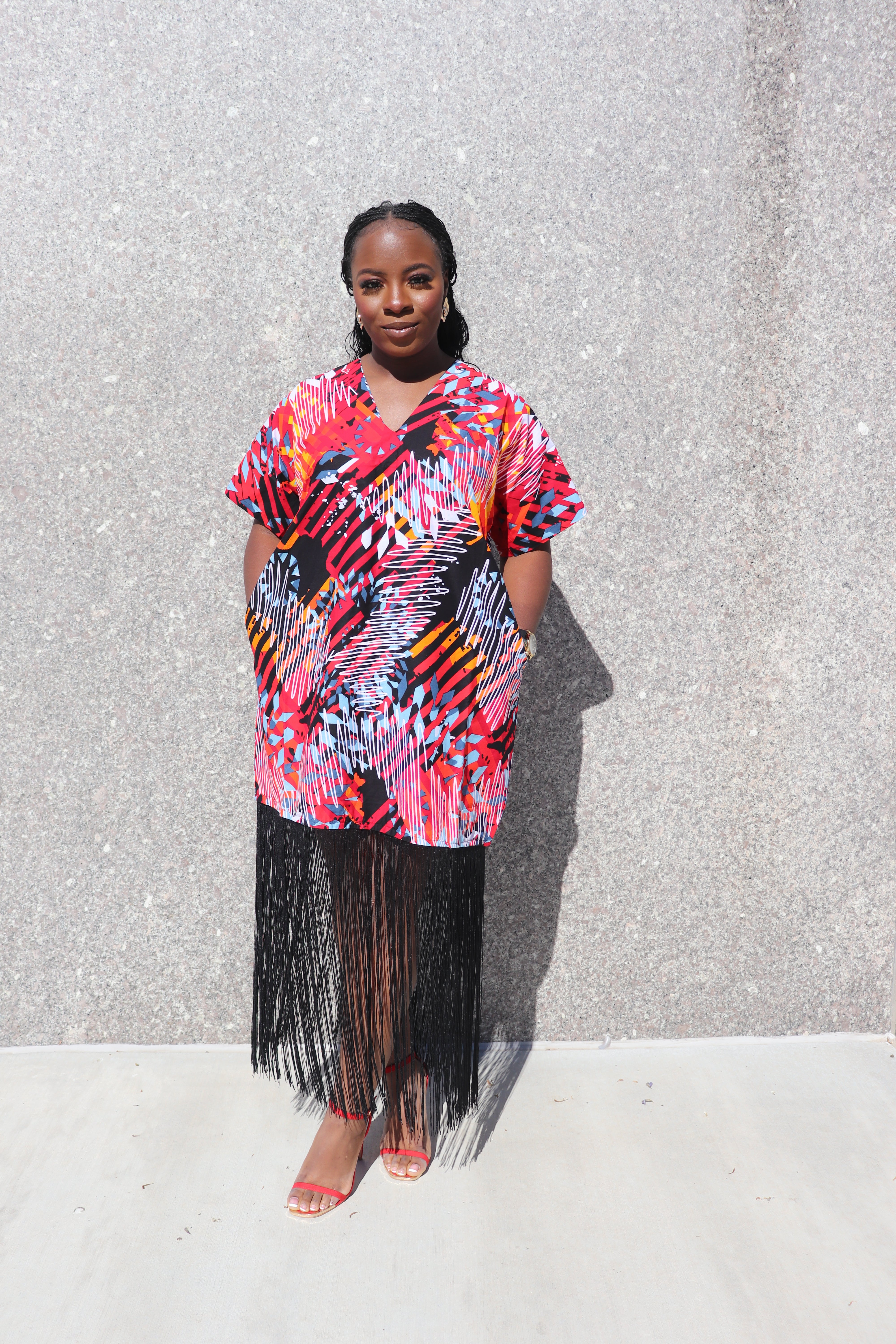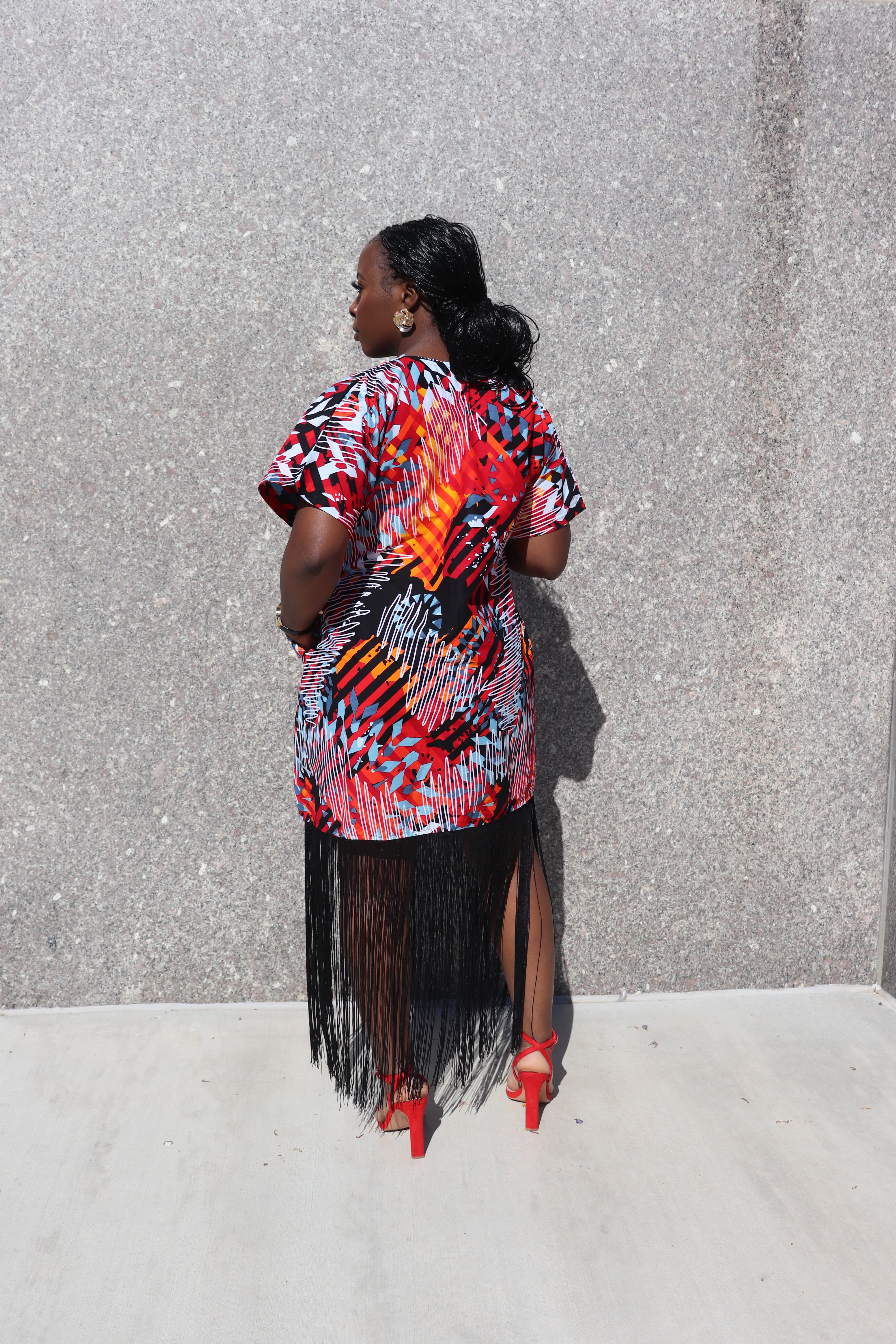 Imani Dress — African Print Fringe Hem Dress